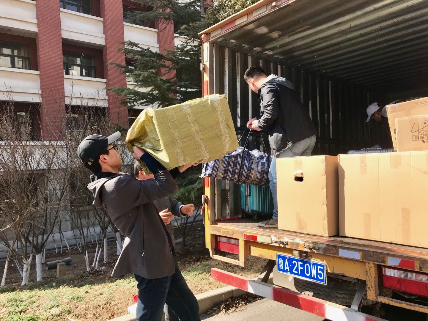 的女生们搬运行李,同学们用团结互助的美好品德,驱散了早春的丝丝寒意,展现了弥足珍贵的同学情谊。从调度搬家车辆到装卸行李,学生会负责人员更是制定了详细的搬迁方案,各司其职、有条不紊,表现出优秀的素质和品质,高度发扬了团队的合作精神。