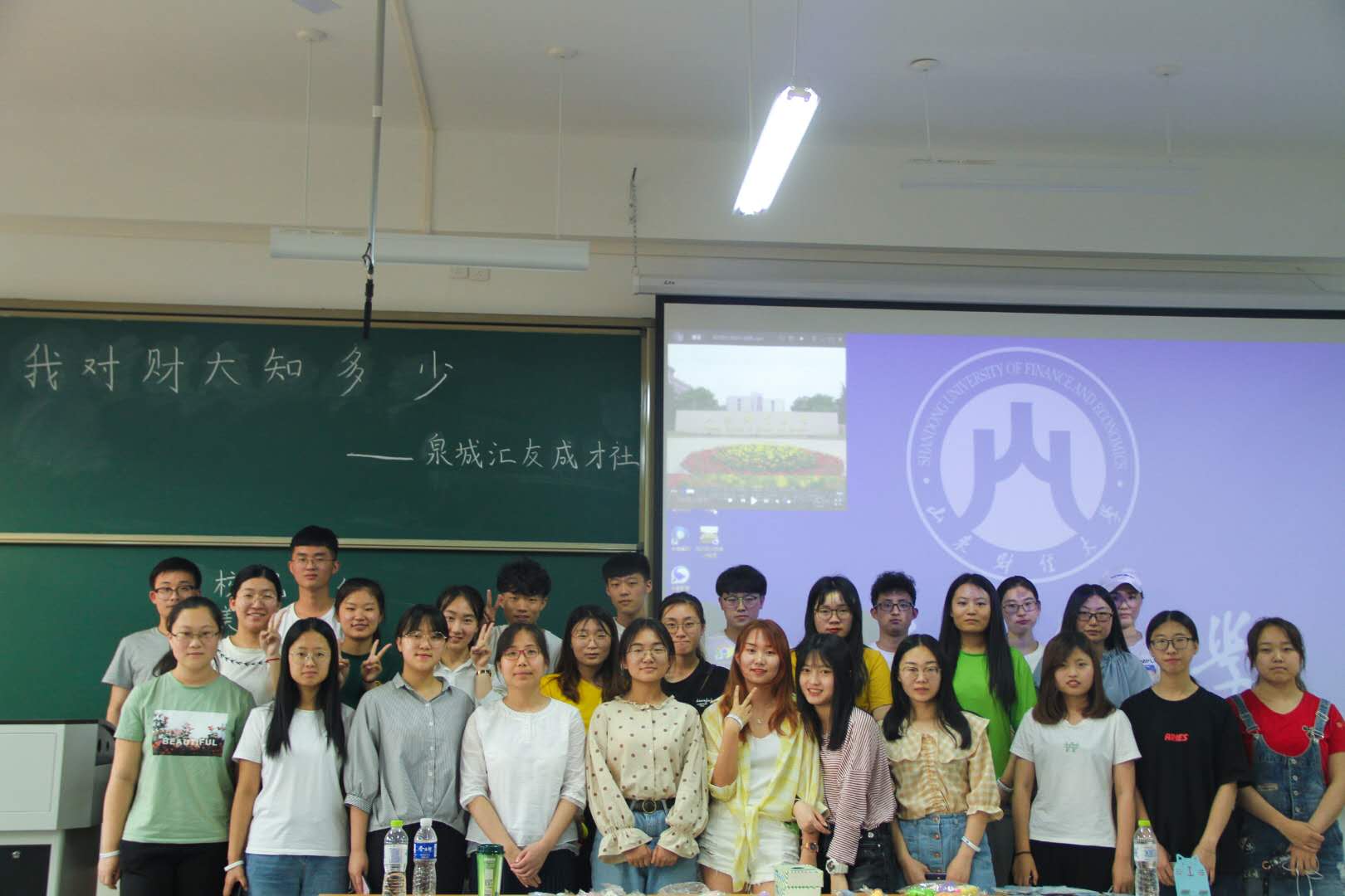 泉城汇友成才社在圣井校区6号教学楼116教室举办了“我对财大知多少”趣味知识竞答活动。本次活动通过同学自由组团报名参加的形式,意在引导大家不断发现财大的美好瞬间,加强同学们与学校各方面的关系纽带,增强对母校的认同感和热爱之情!