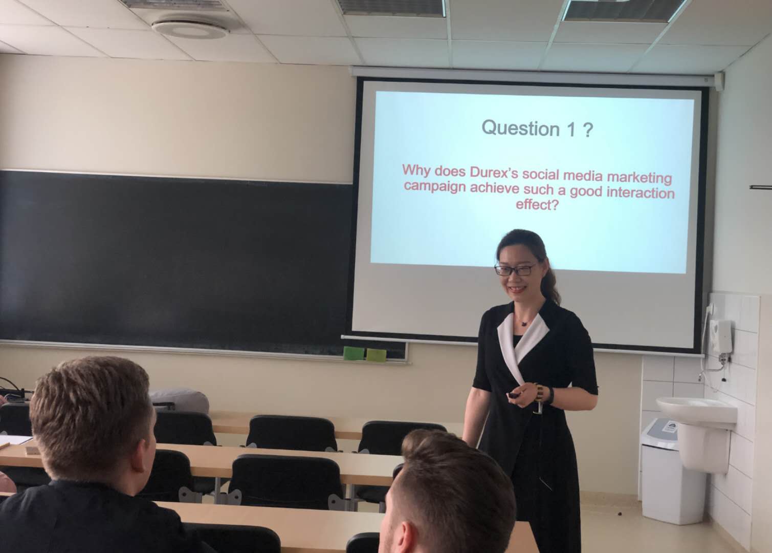 开展教学交流活动。按照既定教学计划,刘侠老师主要为对方本科大一新生讲授市场营销学中“The Global Marketplace”、“Social Media and Interactive Marketing in China”等内容,王旭老师主讲“Foundations of management”、“Chinese Culture and Chinese Management Thought”等管理学内容。两位老师结合了传统讲授、课堂讨论、案例分析等多种教学手段,学生反馈积极,教学效果良好。此外,两位老师积极承担了研究生的部分教学活动,并针对关系营销、中国传统管理思想等主题展开激烈探讨。教师交流方面,应经管足球分析