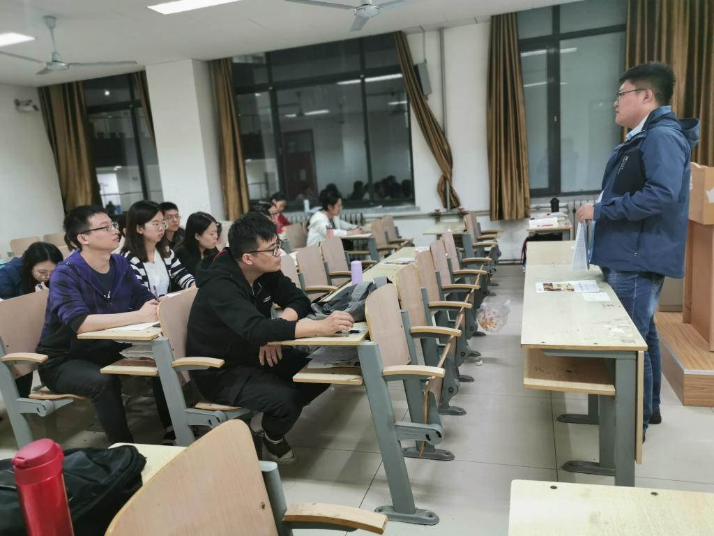 在逸夫楼Y206教室开展就业指导讲座活动。本次讲座以就业观念与就业流程为主题,由研究生辅导员尤泽民担任主讲。