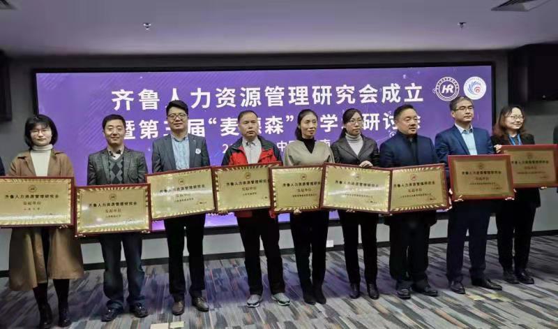 与会嘉宾为山东省行为科学学会新增补选的任燕副会长、王珍副秘书长颁发了聘书,为本次会议的获奖论文颁发了获奖证书,为齐鲁人力资源管理研究会的负责人颁发了聘书;为齐鲁人力资源管理研究会成立的发起单位颁发了牌匾。