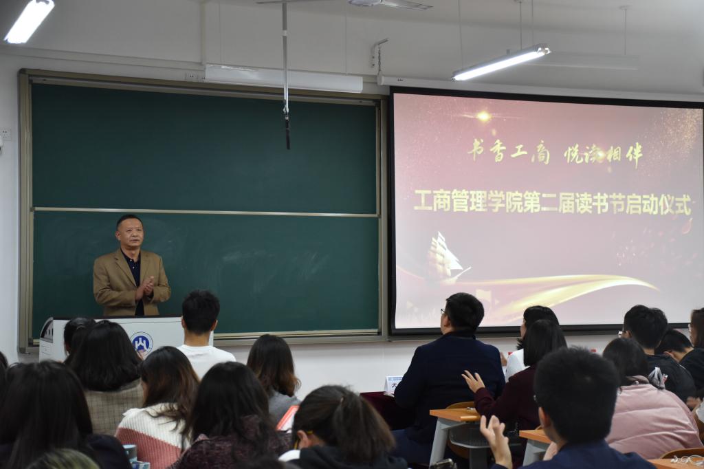圣井校区全体学生,并且增添读书会、朗诵会、主题征文比赛等多种活动形式。随后2018级学生代表周颖和2019级学生代表周文杰先后就参与读书节活动的感受进行了交流分享。最后,院党委书记李旭刚进行总结发言。李旭刚对本次活动给予了高度认可和支持,并希望同学们以此次读书节活动为契机,要读书,培养阅读习惯;会读书,多读经典名著;深读书,夯实专业知识。