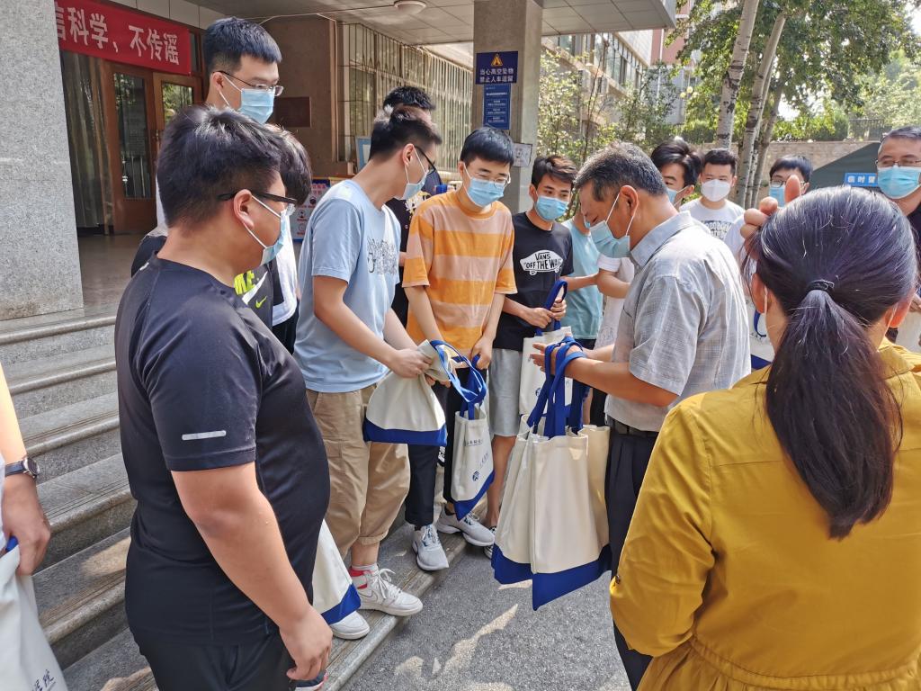 领导和老师奔走在本、硕毕业生的四栋宿舍楼,将精心准备的“毕业大礼包”亲自送到毕业生手上。
