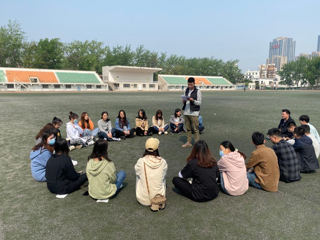 洋溢着青春的笑脸,同学们围坐在操场,形成了一道独特的风景线。在2020级研究生班长周凯的主持下,同学们开启了户外理论学习的新篇章。周凯准备了国家安全知识的有关内容,带领大家深入了解什么是国家安全、国家安全包括了哪些领域及《国家安全法》的相关知识。在学习过程中,大家针对自己的疑问进行了互动交流,同学们积极探讨,踊跃讨论。