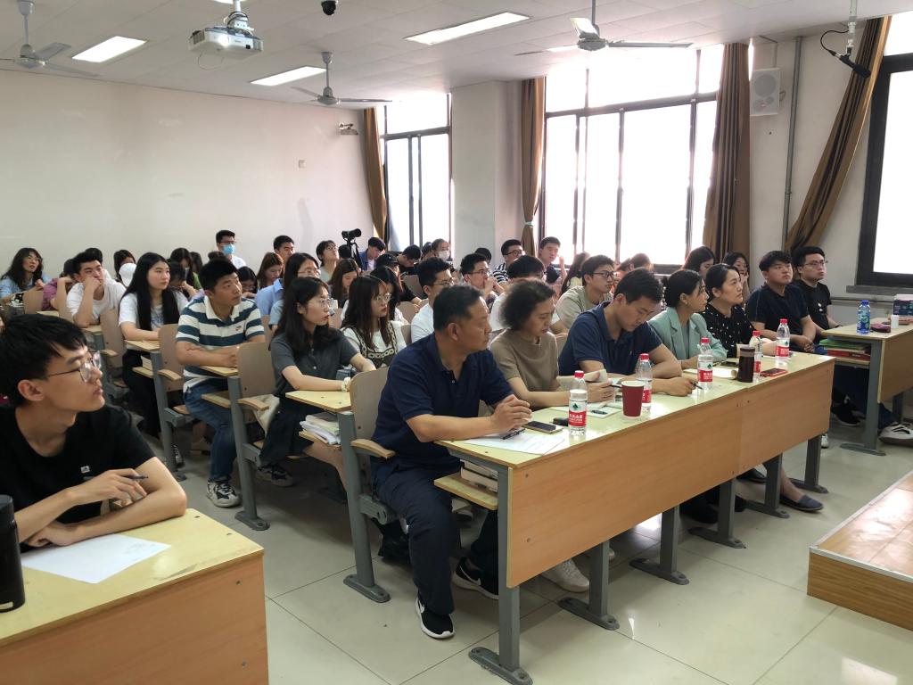 党委书记李旭刚、党委副书记彭艳红、副院长赵红、王旭、研究生辅导员侯昭瑾和全体研究生一起聆听了报告,报告会由李旭刚主持。