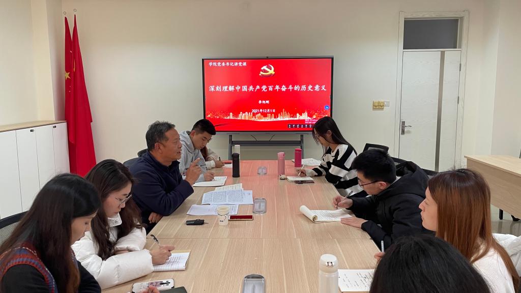 党委书记李旭刚在逸夫楼207为研究生第三党支部上了一堂题为“深刻理解中国共产党百年奋斗的历史意义”的党课,足球分析网站