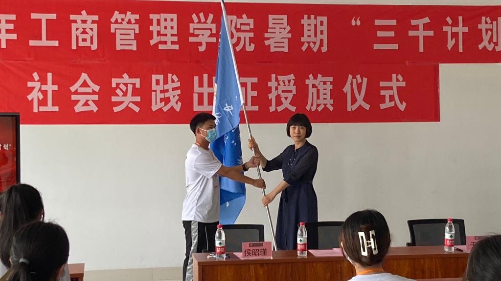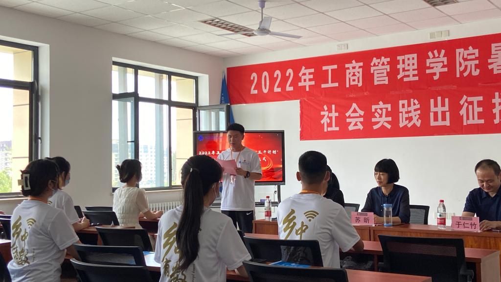 院长苏昕、党委副书记侯昭瑾、市场营销系主任、政府绩效评价研究中心副主任于仁竹及带队老师、学生实践团队代表参加。侯昭瑾主持仪式。