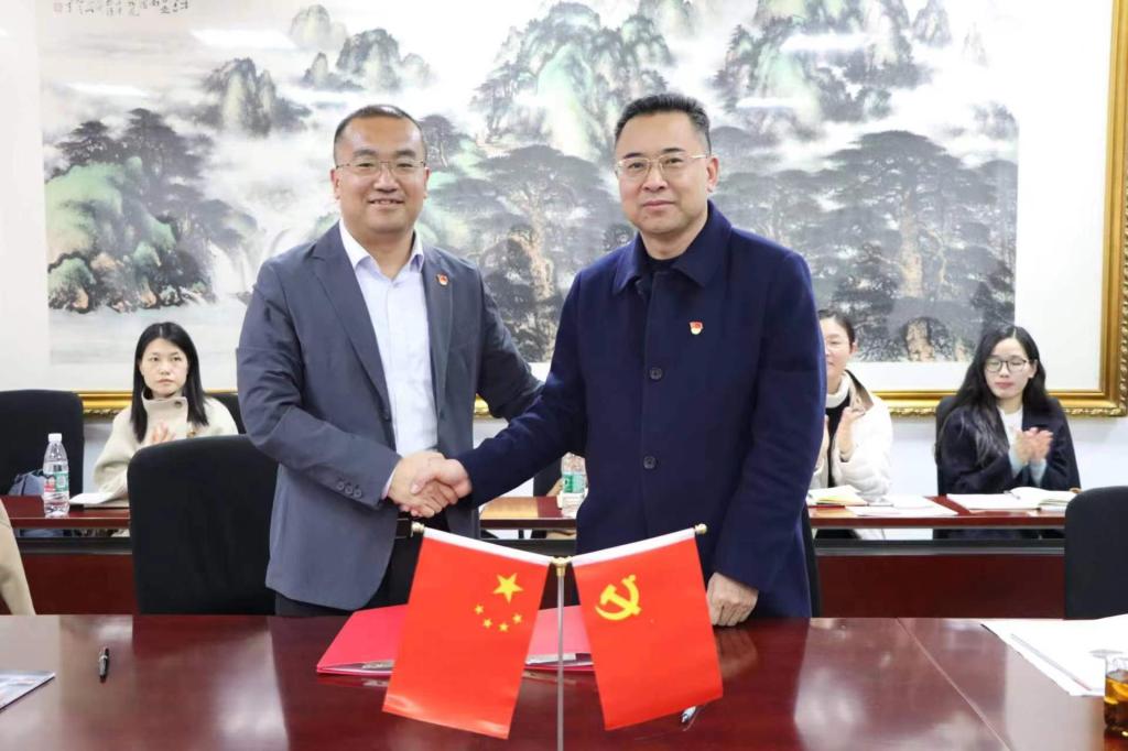 党委书记赵世民与润华集团党委委员、人力资源总监夏晓军共同签署了党建共建协议书。副校长陶虎与润华集团总裁任鹤年共同为党建共建基地揭牌。