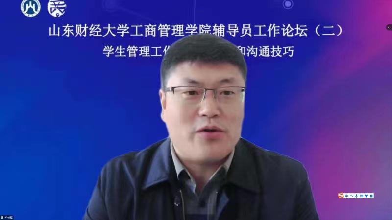 党委学工部部长、学生处处长、“图说思政”创始人、“图说思政校园行”活动发起人尤长军,以“学生管理工作的语言艺术和沟通技巧”为题,进行了线上主旨报告。足球分析
