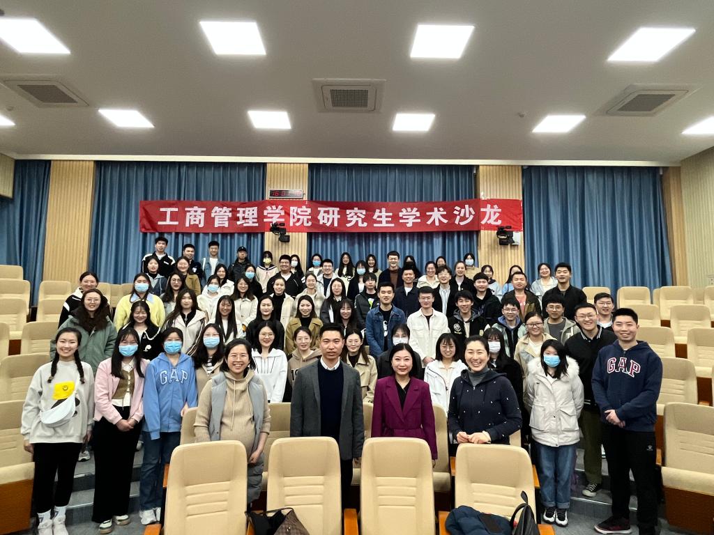 随后,胡文安结合自身求学经验和学术成果,与参会研究生展开首期学术分享交流,深入浅出地介绍了如何选题和开展写作、研究能力的提升方法和技巧、案例论文写作技巧、目标期刊的选择等内容。同时,也鼓励大家在科学研究思路以及学术工作中要聚焦具体管理情境,多质疑、多思辨。最后,现场师生就相关学术问题与报告人进行了互动交流,并进行了合影留念。