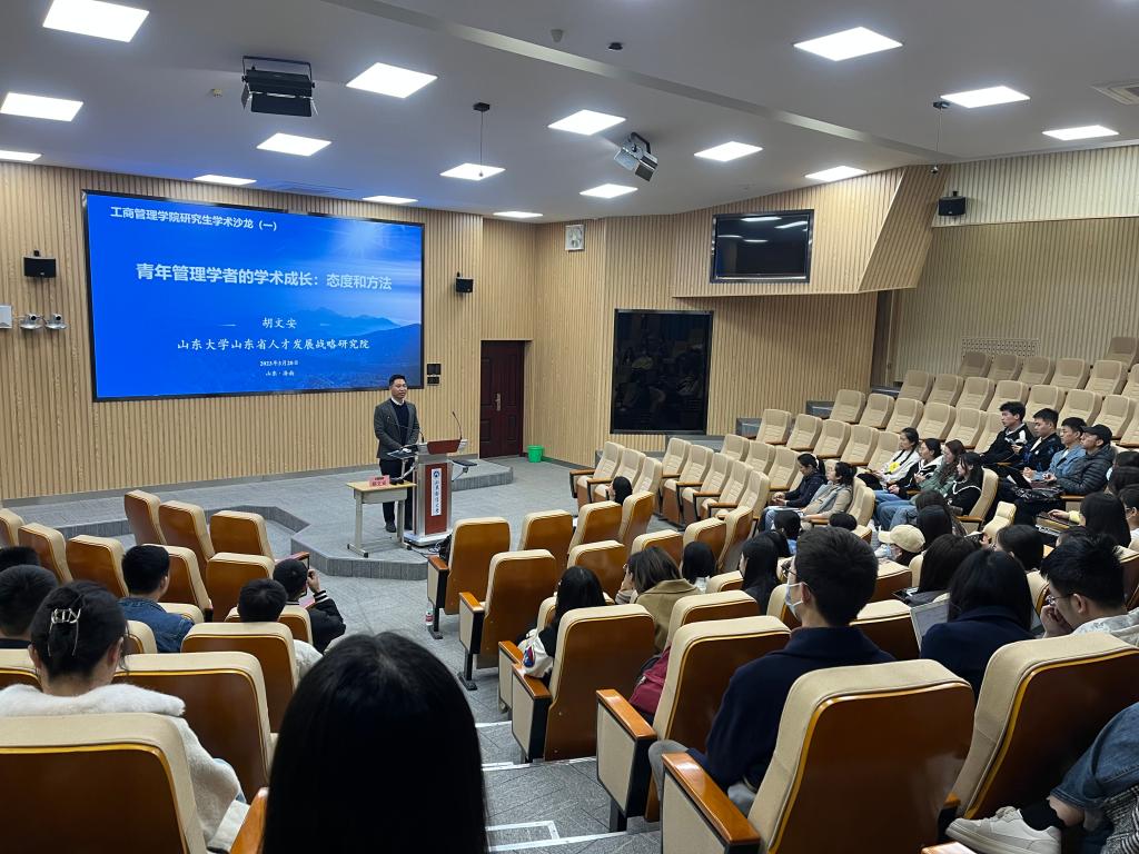 研究生学术沙龙启动仪式暨首期学术报告在逸夫楼103报告厅举行。本次活动特邀山东大学山东省人才发展战略研究院党支部书记、副教授胡文安,以《青年管理学者的学术成长:态度和方法》为主题进行首期学术分享。仪式由足球分析