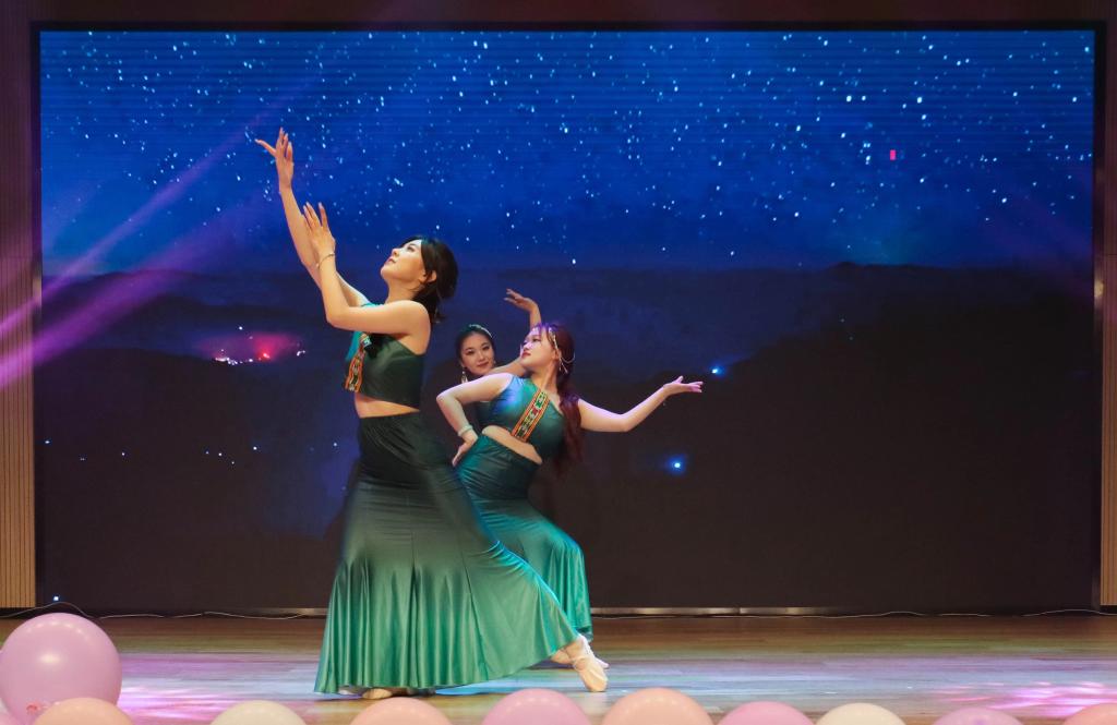 保持热爱,奔赴山海。小品《谁累垮了周日》以生动的表演形式,诙谐的对话方式,幽默的肢体动作强调了大学生应珍惜在大学的奋斗时光,不负青春不负己;歌曲串烧《跨越群山,追梦四海》,勇敢向前是生活的常态,奋力奔跑是我们奔赴未来的姿态,融汇的语言为中华文明注入新的活力生机;《民族大联欢》将维吾尔族的热情,傣族的婀娜,藏族的飒爽以舞蹈的形式淋漓尽致的展现出来。