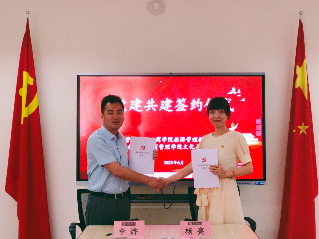 文化与旅游系党支部书记杨亮共同签署了《基层党组织党建共建协议书》,就党建与业务融合发展、专业建设和教学、科研及社会服务等工作进行了深入探讨,并达成了长期交流合作意向。