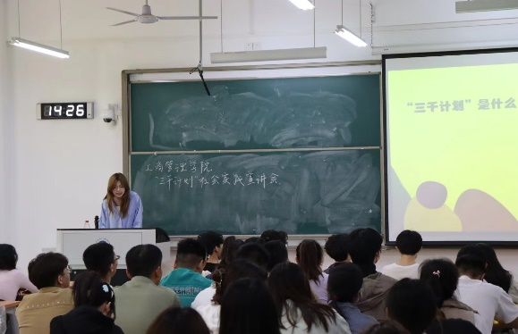 逐梦正青春,奋进正当时。相信同学们在听完宣讲后,对三千计划有了进一步的认识。三千计划是一次宝贵的学习经历,让我们走出课堂、进入社会,解决实际问题,创造社会价值。希望同学们在三千计划中勇于挑战、不断尝试。以三千计划为契机,不断提升自我,有所收获,有所成长。祝同学们在即将到来的三千计划中取得佳绩!