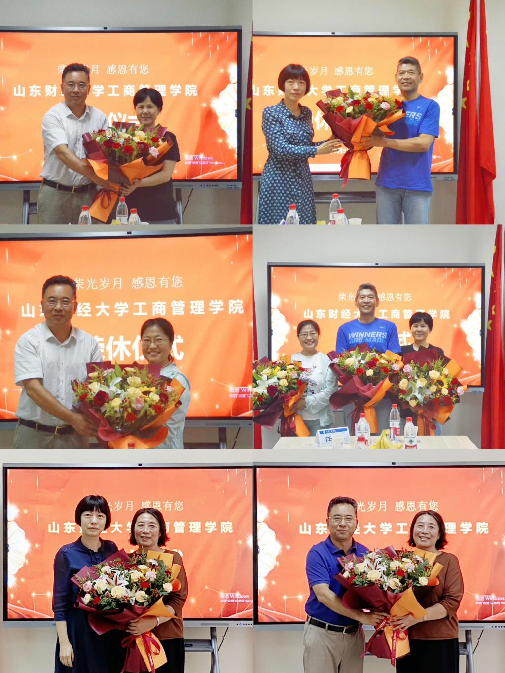 工会副主席任传鹏,工商管理系主任兼教学发展中心主任费振国,市场营销系主任刘侠,文化和旅游系主任于伟,文化和旅游系副主任张彦,工商管理系工会组长张晴,荣休教师代表于强、曲英艳、刘菊湘、李季芳出席仪式。