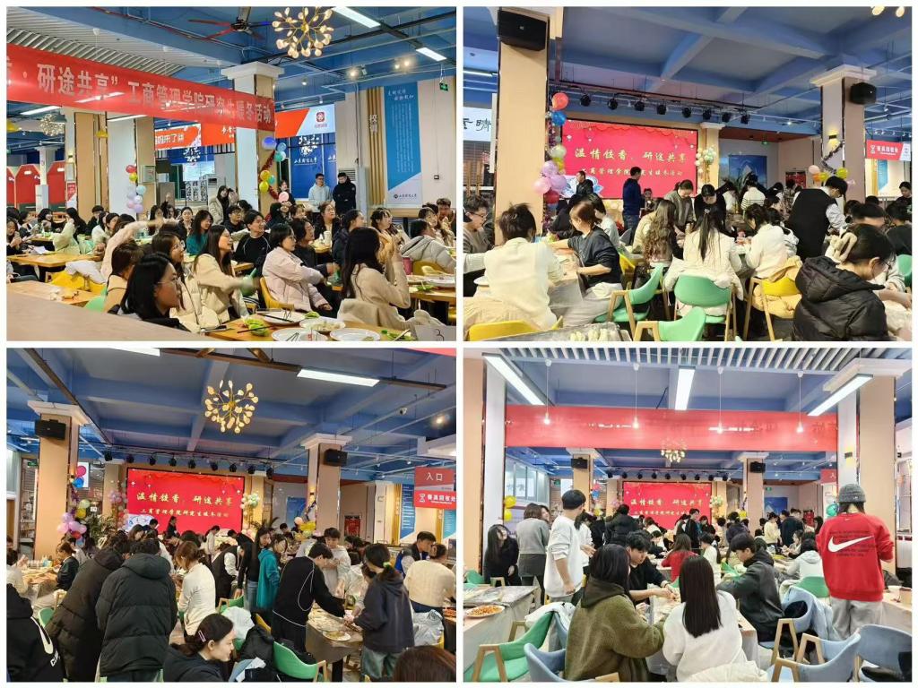 党委书记赵世民、副书记彭艳红、市场营销系主任刘侠、办公室主任商亮及研一研二研究生欢聚一堂,包饺子,迎冬至。