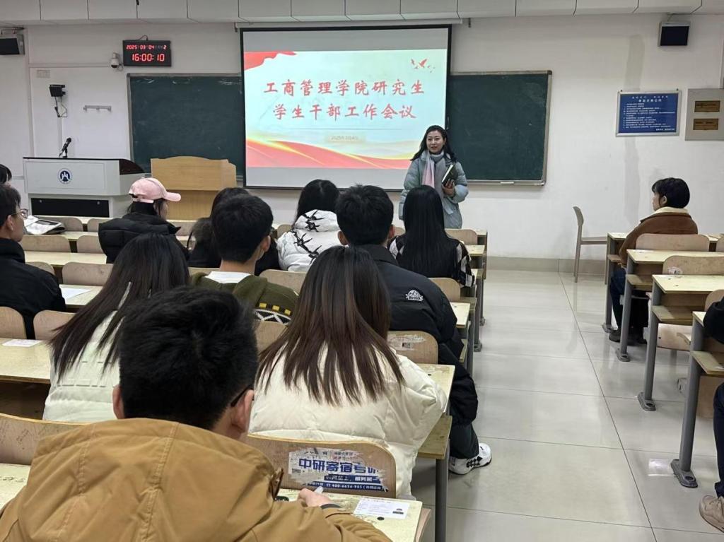 最后,彭艳红对班级及研究生会管理的各方面进行总结。她充分肯定了学生干部们的辛勤付出和取得的成绩,鼓励同学们要勇于创新,不断优化管理流程,提高服务质量,更好地发挥桥梁纽带作用。