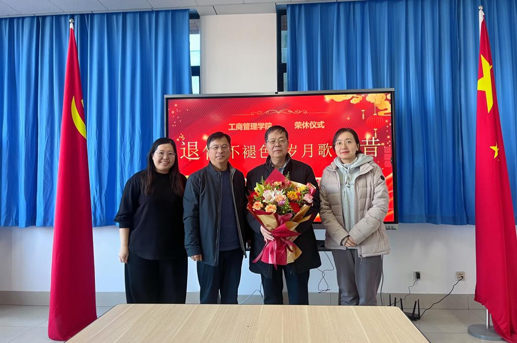 党委书记赵世民、院长徐鹏、党委副书记彭艳红、郑大伟、副院长陈庆江,工商管理系教师费振国、徐海燕、夏兆敏、工会副主席张景赛以及2025年度荣休教师代表齐聚一堂,共同回顾执教岁月,畅叙情谊,展望未来。