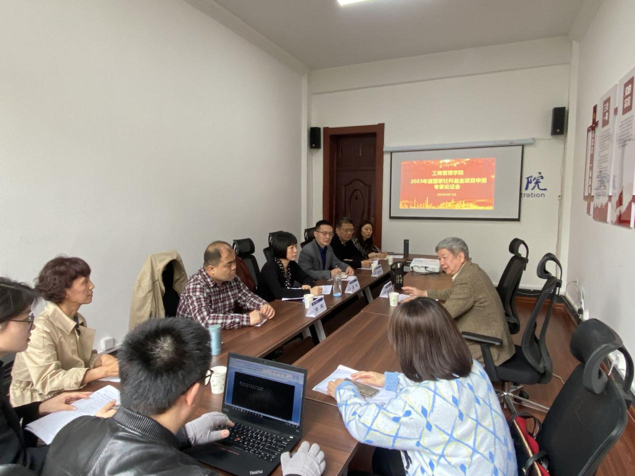 工业经济研究所研究员黄速建教授进行了针对性辅导。院长苏昕、副院长徐鹏、科研发展中心主任陈庆江及拟申报2023年度国家社科基金项目的教师参加了专家论证会。