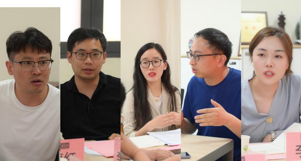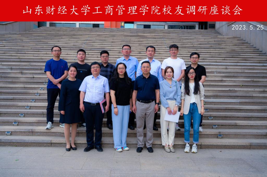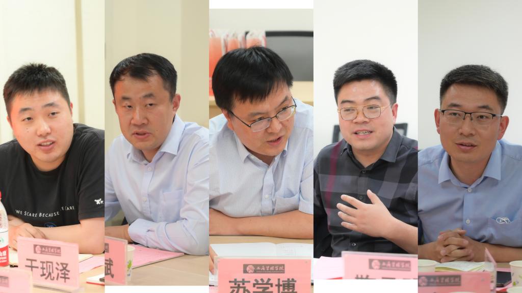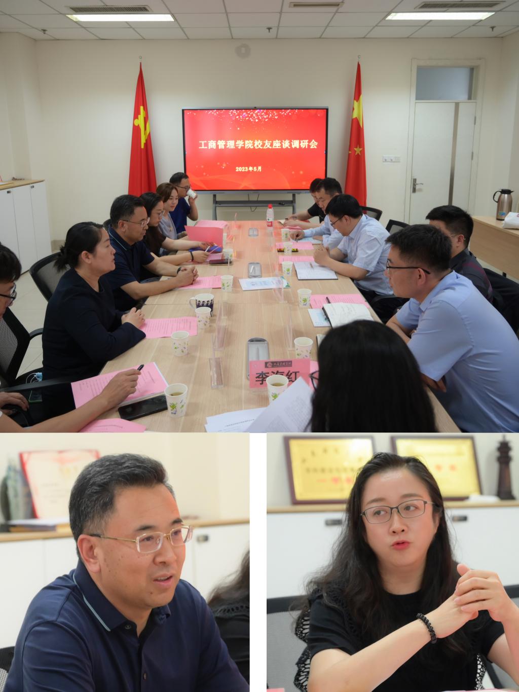 在燕山校区逸夫楼207会议室召开校友调研座谈会。1995级贸易经济专业校友苏学博、2005级工商管理专业校友李斌、2007级市场营销专业校友宁德军、鞠承明、18级研究生校友于现泽、足球分析