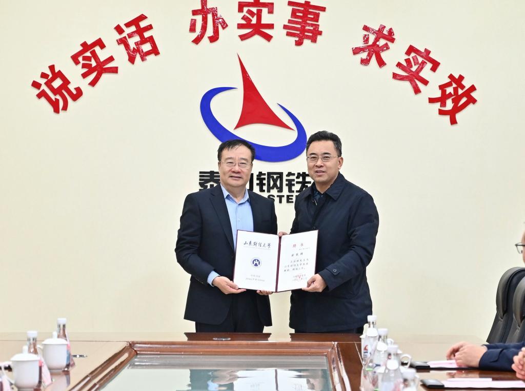 座谈会上,王永胜介绍了泰山钢铁的发展历程、产业板块、优势产品以及公司在绿色发展、补链强链等方面的措施和成效。王永胜表示,山东财经大学经管学科的优势和特色十分突出,凭借优质的办学质量和良好的学术声誉得到社会各界广泛认可,期待双方能够在多个层面和领域展开合作。