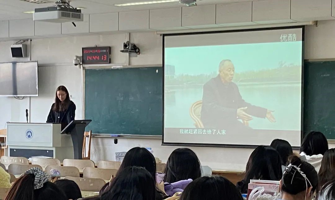 随后,同学们一起观看了一段张买江的采访,从他朴实的话语中同学们切实的感受到了他那不屈于困难的精神力量,即便再苦再难,也一定要把水渠建成的信心。