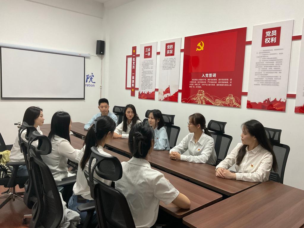 习近平总书记在党的二十大报告中提出,“广大青年要坚定不移听党话、跟党走,怀抱梦想又脚踏实地,敢想敢为又善作善成,立志做有理想、敢担当、能吃苦、肯奋斗的新时代好青年,让青春在全面建设社会主义现代化国家的火热实践中绽放绚丽之花”。支部党员认真领会习近平总书记对新时代青年的谆谆教诲,并且共同学习了党的二十大代表——“时代楷模”张桂梅校长“扎根深山,筑梦学子”的感人故事。她爱岗敬业、无私奉献、忠诚于党,用实际行动践行了身为一名中国共产党党员的责任和使命,这种高尚品质深深感染了支部每一位党员。王淑莹和苟芳晴作为第23届研究生支教团成员也用镜头述说其投身西部教育建设、奉献青春力量的支教经历。她们表示:“中国共产党党员的初心和使命有着巨大的力量,它能让我们拧成一股绳,心往一处想,劲往一处使。也正是这样的力量,鼓励着我们响应着党的号召,去往西部祖国最需要我们的地方”。这段与孩子们共同成长的宝贵经历,让她们真正体会到了什么是责任和担当。