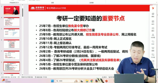 特邀高联教育教学总监范林担任主讲嘉宾,通过线上平台举办研究生考试备考指导讲座。此次讲座基于前期对学生需求的调研,针对性解答备考困惑,吸引了百余名意向考研学生参加。